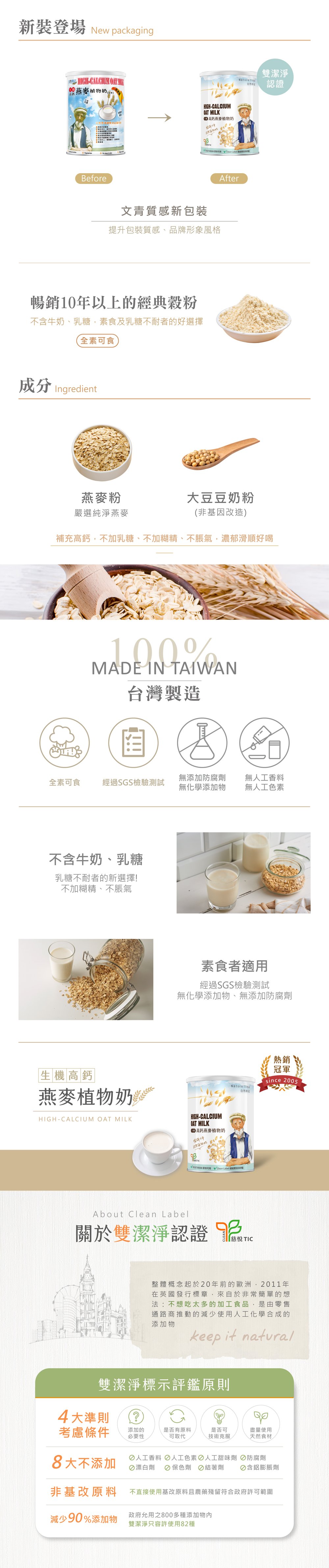 ※過敏原:本產品含有”燕麥粉、大豆豆奶粉、大豆分離蛋白、卵磷脂粉”,不適合其過敏者食用。
