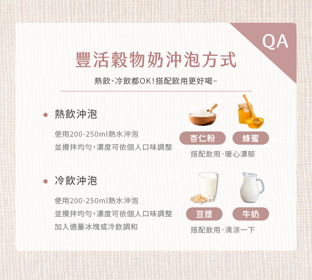 嚴選天然食材與關鍵成分亞麻仁籽、葡萄醣胺、菊苣纖維,無人工香料、色素、防腐劑,滋補強身、營養補給,全素可食的高鈣養生飲品。