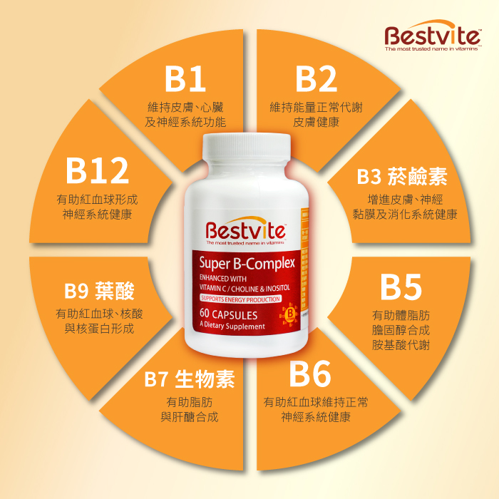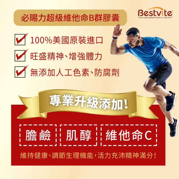 【Bestvite】必賜力 超級維他命B群膠囊 60顆|高單位B群配方|增強體力|美國原裝進口