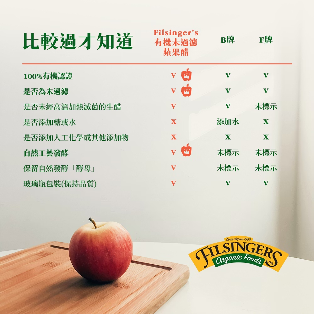 【Filsingers】有機未過濾蘋果醋945ml×6瓶|免運|無加糖加拿大有機認證