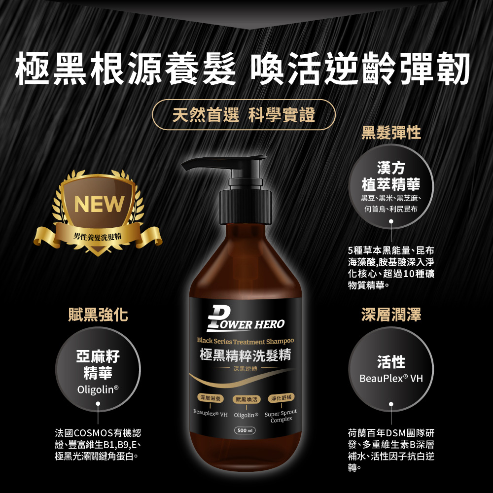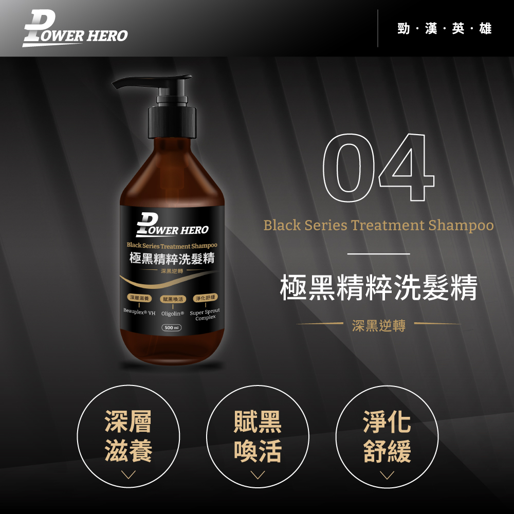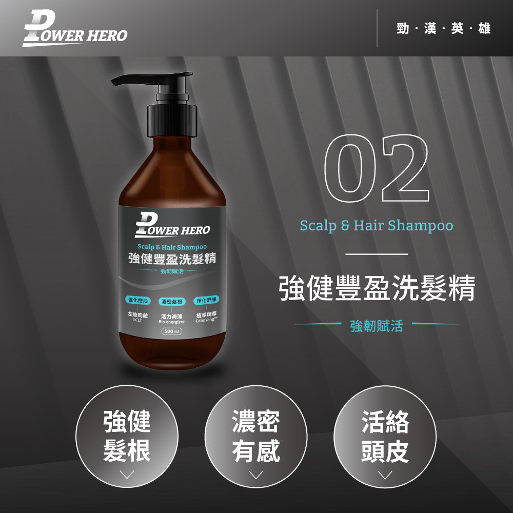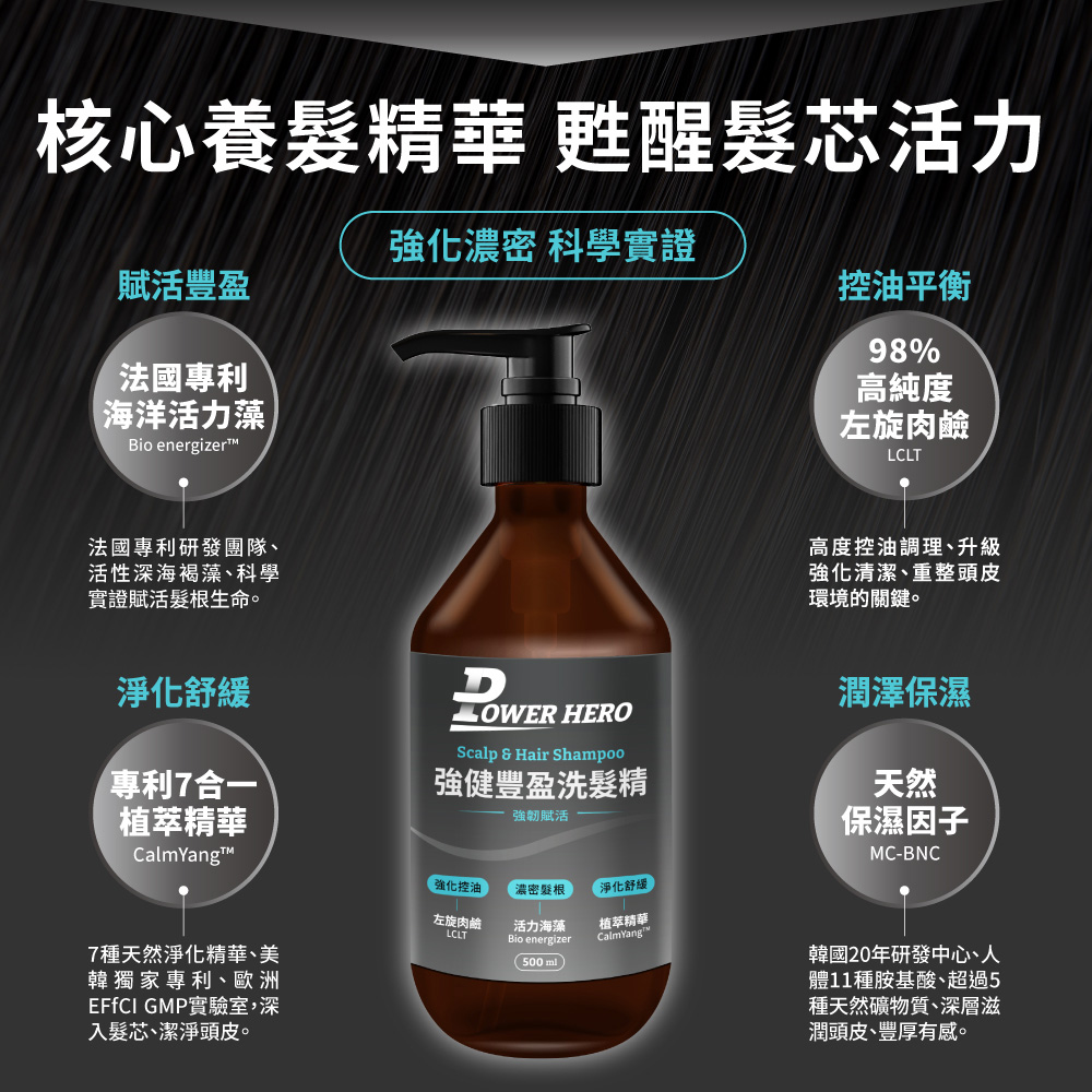 【PowerHero】強健豐盈洗髮精/極黑精粹洗髮精 500ml/瓶|淨化頭皮 強化濃密
