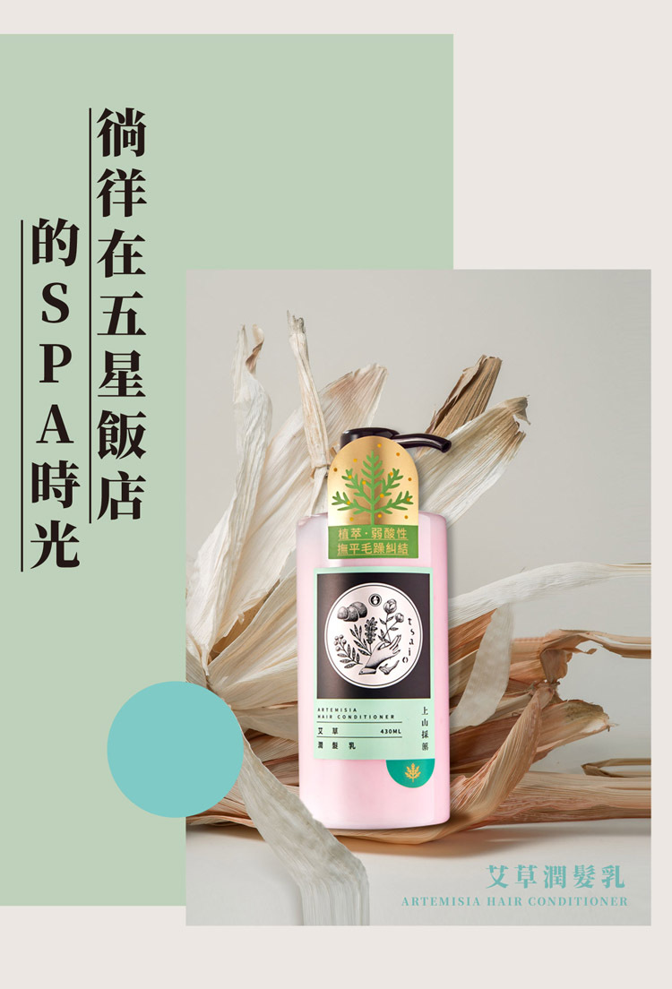 艾草潤髮乳 以艾草萃取為主要成分,搭配柔潤因子深層保水,髮絲洗後柔順富有彈性、不毛躁。植萃弱酸性配方,溫和不刺激,所有髮質皆適用。洗髮後取適量均勻塗抹於髮絲,靜置 3–5 分鐘充分吸收後以清水沖淨,簡單步驟讓秀髮展現健康光澤。