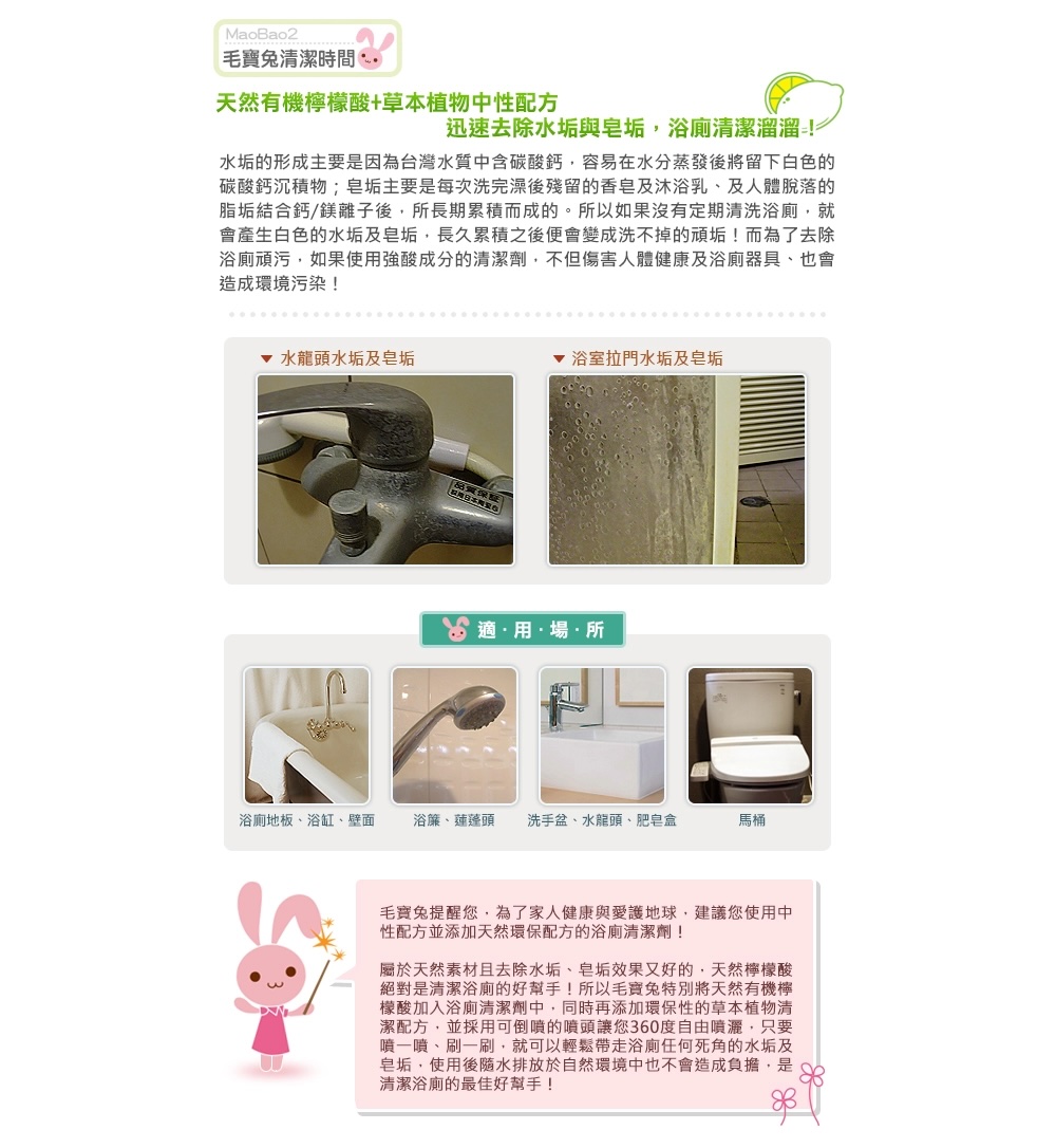 ●天然有機檸檬酸,迅速去除水垢及皂垢
