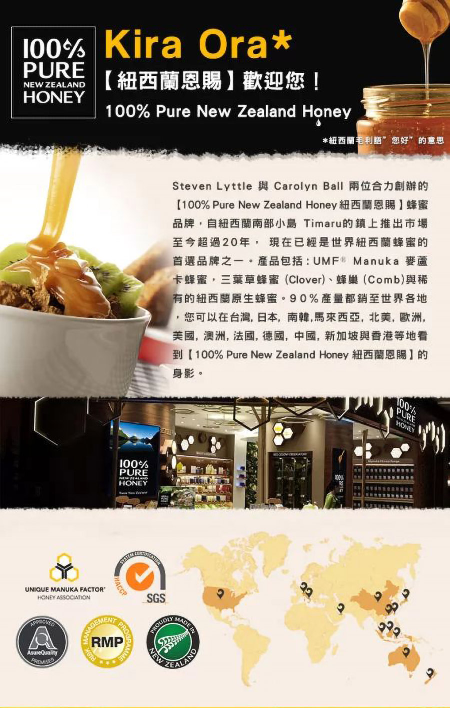 由Steven Lyttle與Carolyn Ball合力創辦,並從紐西蘭南部小島Timaru的鎮上推出市場,至今超過20年,現在已經是世界紐西蘭蜂蜜的首選品牌之一。