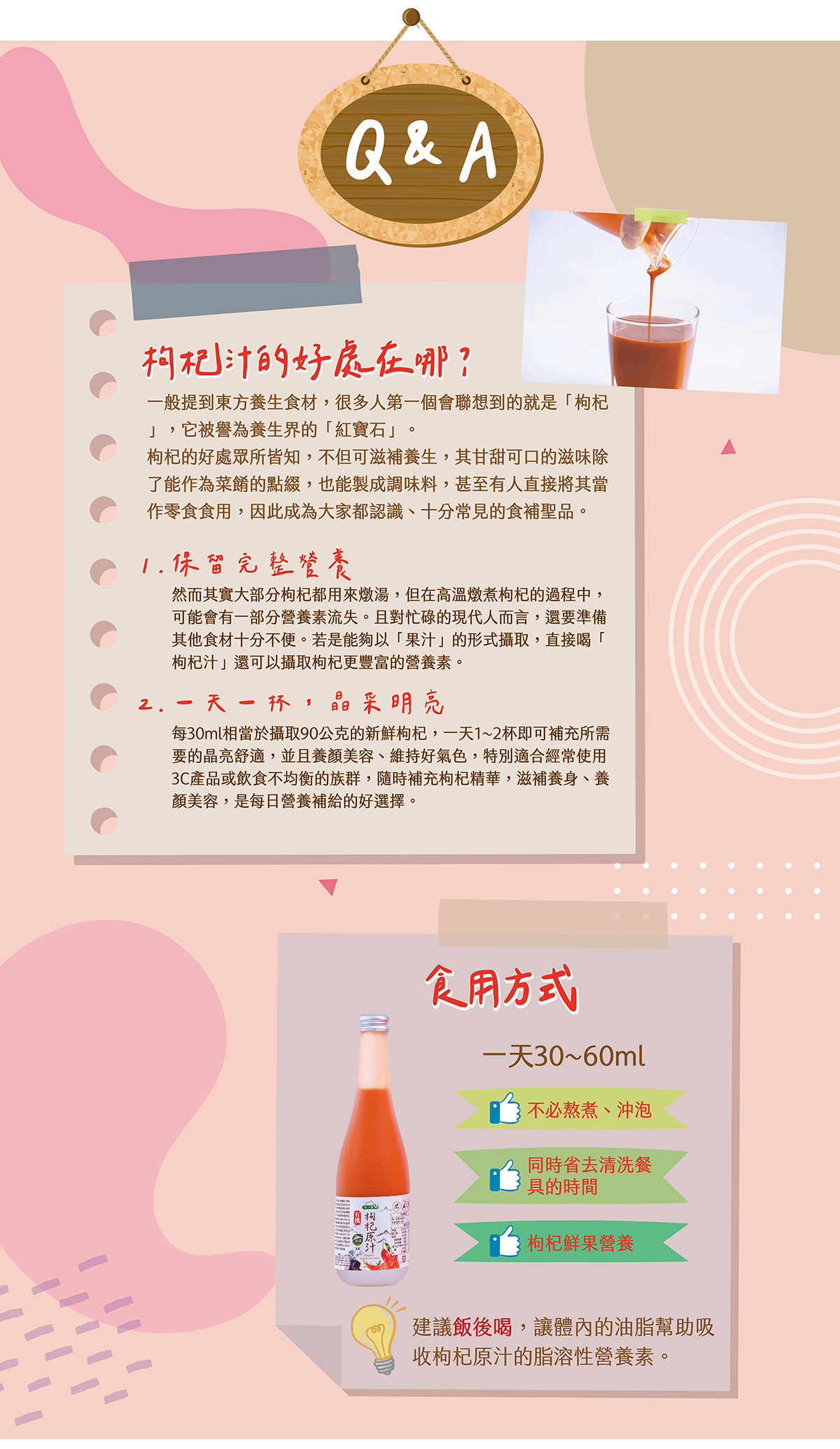 📌 本產品為100%枸杞鮮果壓榨,若有果肉沉澱屬自然現象,請安心飲用
