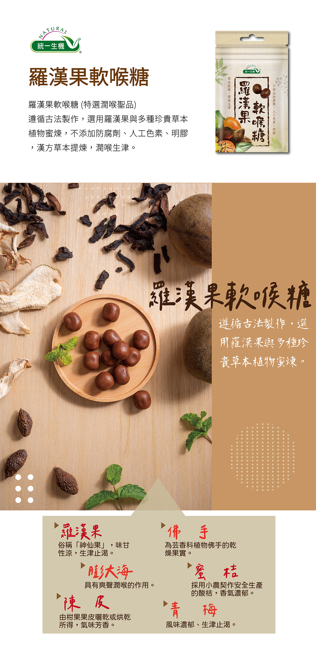 ✔ 羅漢果:「神仙果」之稱,味甘性涼,能潤喉生津、緩解口乾舌燥