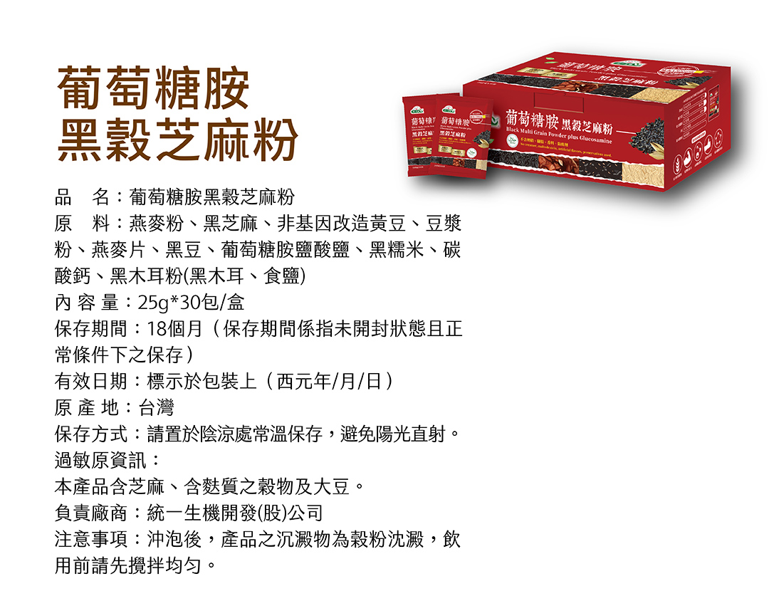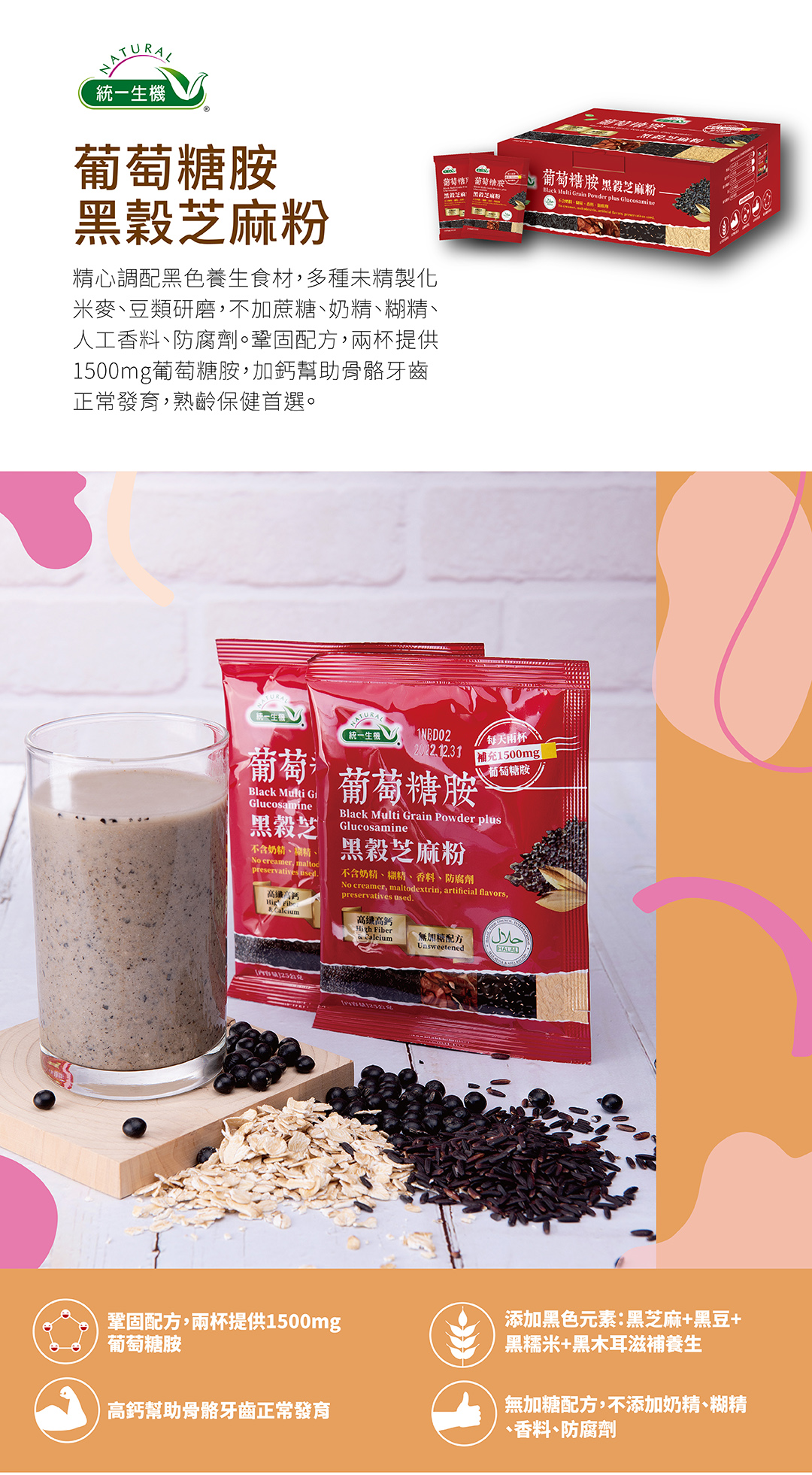 【統一生機】葡萄糖胺黑穀芝麻粉 30包|1500mg葡萄糖胺補充|高鈣高纖|無加糖沖泡飲