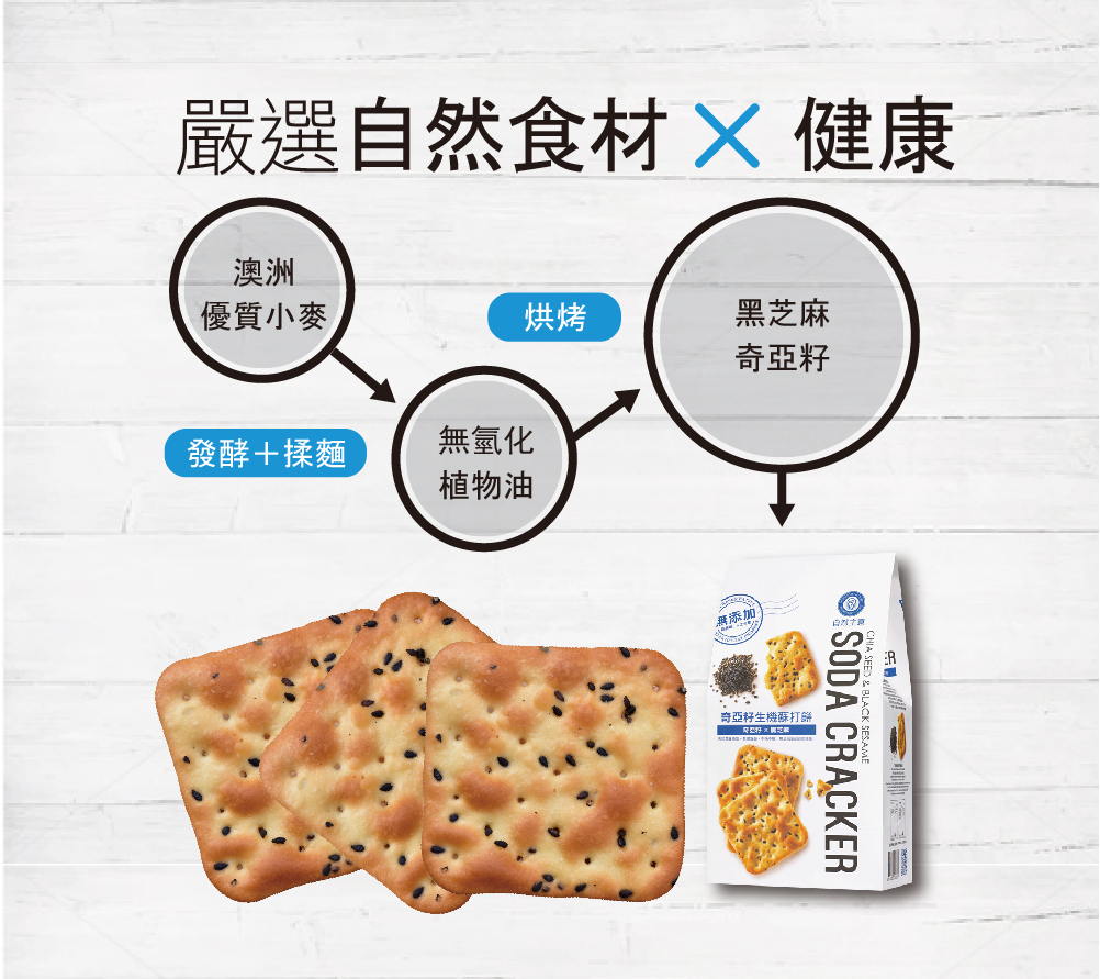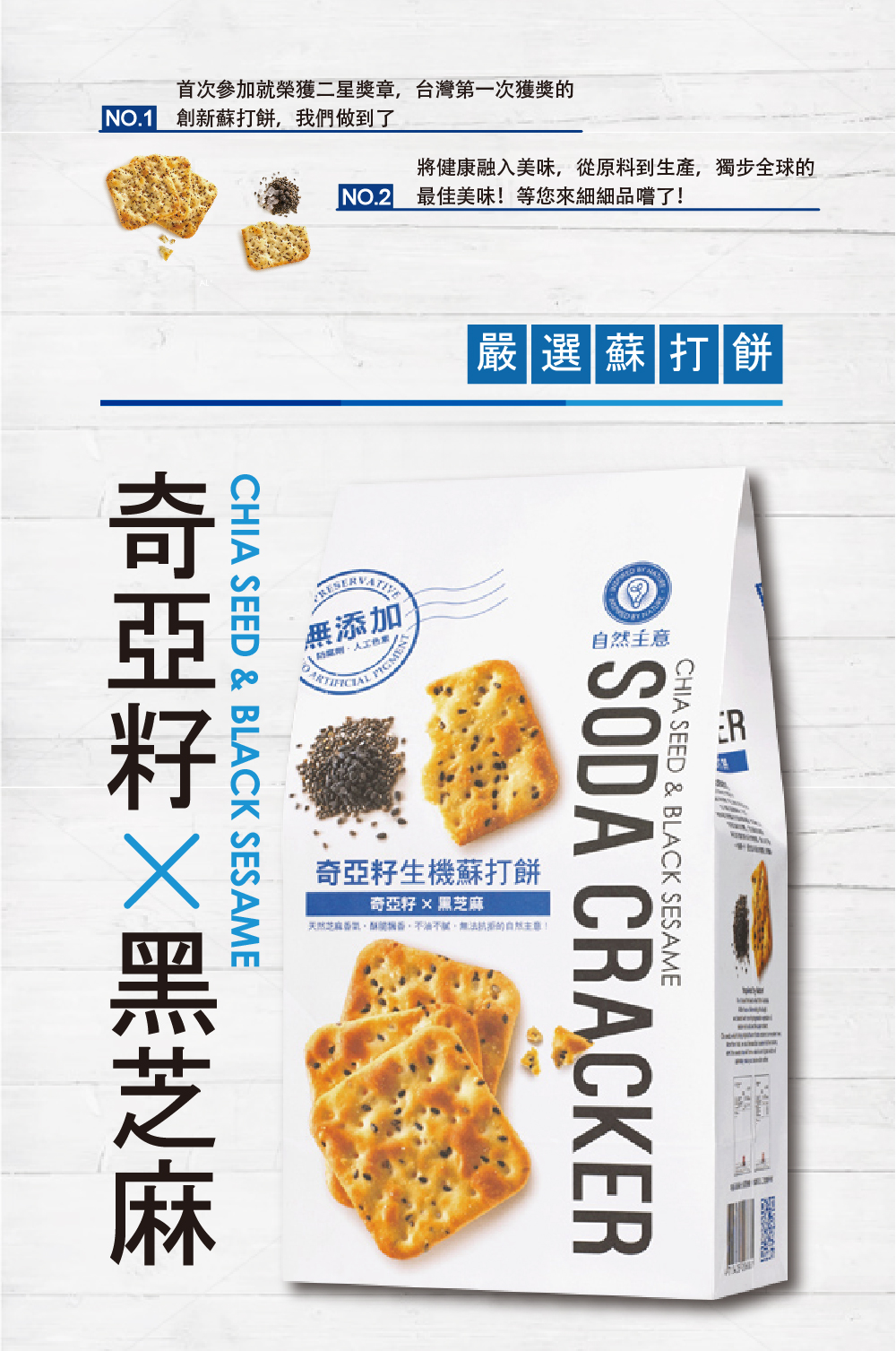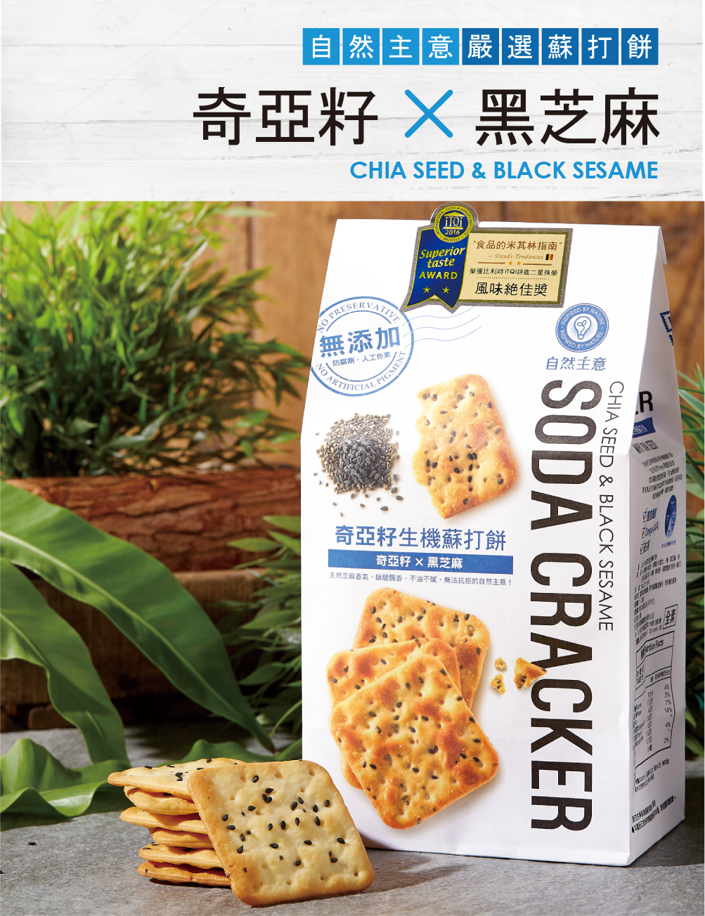 | 品名 | 【自然主意】奇亞籽黑芝麻生機蘇打餅 |