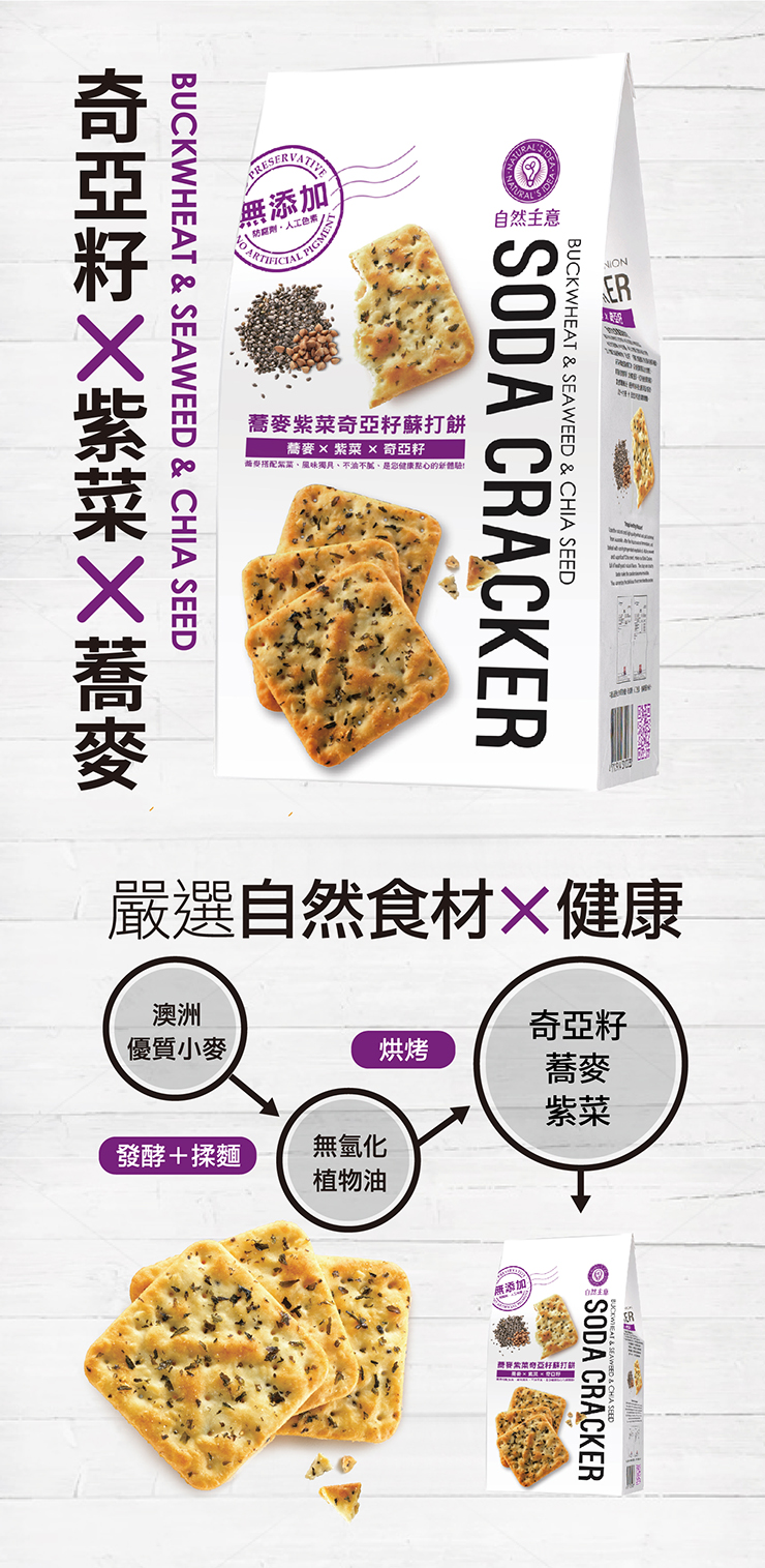 品 名:蕎麥紫菜奇亞籽蘇打餅